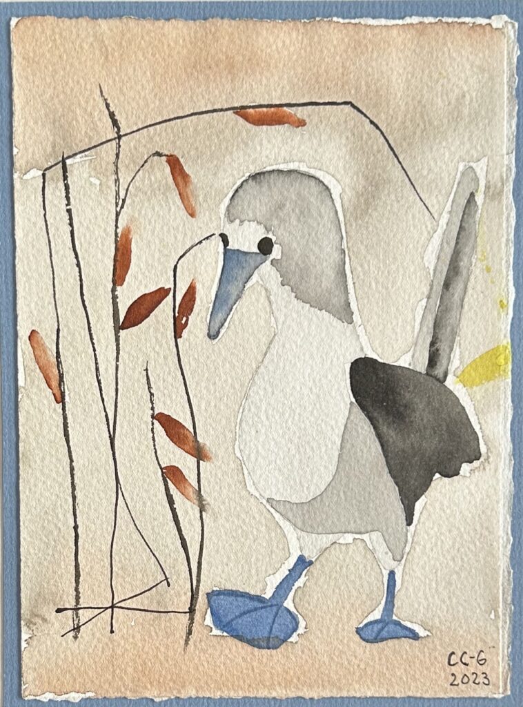 - Under parningsleken gör hanen stor affär av sina blå fötter och rör dem intensivt
