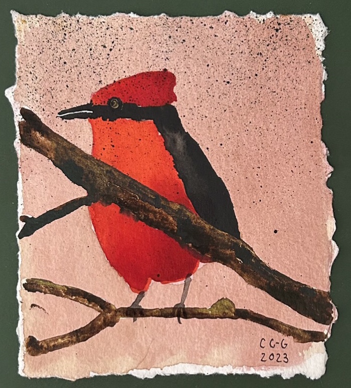Fåglarna är målade med flytande tusch på grovt akvarellpapper