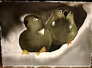 Fåglarna är målade med flytande tusch på grovt akvarellpapper