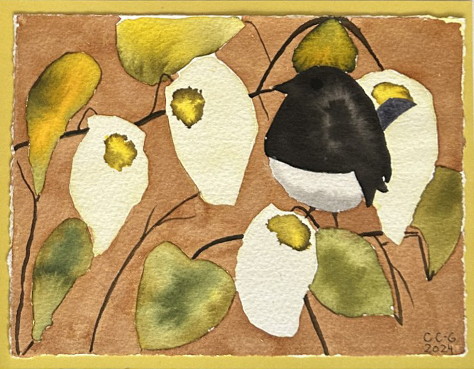 Fåglarna är målade med flytande tusch på grovt akvarellpapper